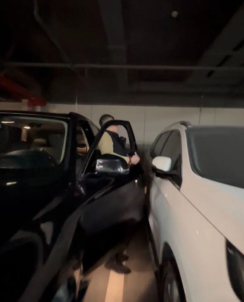 刘先生:这是人家没停正的情况。人家停正,我的车根本打不开门。因为我那边空间也不宽,我这边停车,旁边还有柱子,你看我倒了好几次才停下。我这边要是没有柱子,我怎么倒都行。他要是把车位改成合理的,我往那边挪一点,我俩都好倒车。我还有比这个大的车,现在都开不回来。我买车位就是放这车,还有皮卡,皮卡现在都开不回来,没法停。