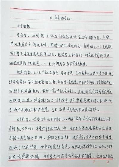 这封信不仅是刘座宇写给初上高原的自己的“成长备忘录”,更道出了所有边境民警的心声——用日复一日的坚守,换来祖国安宁、万家团圆。